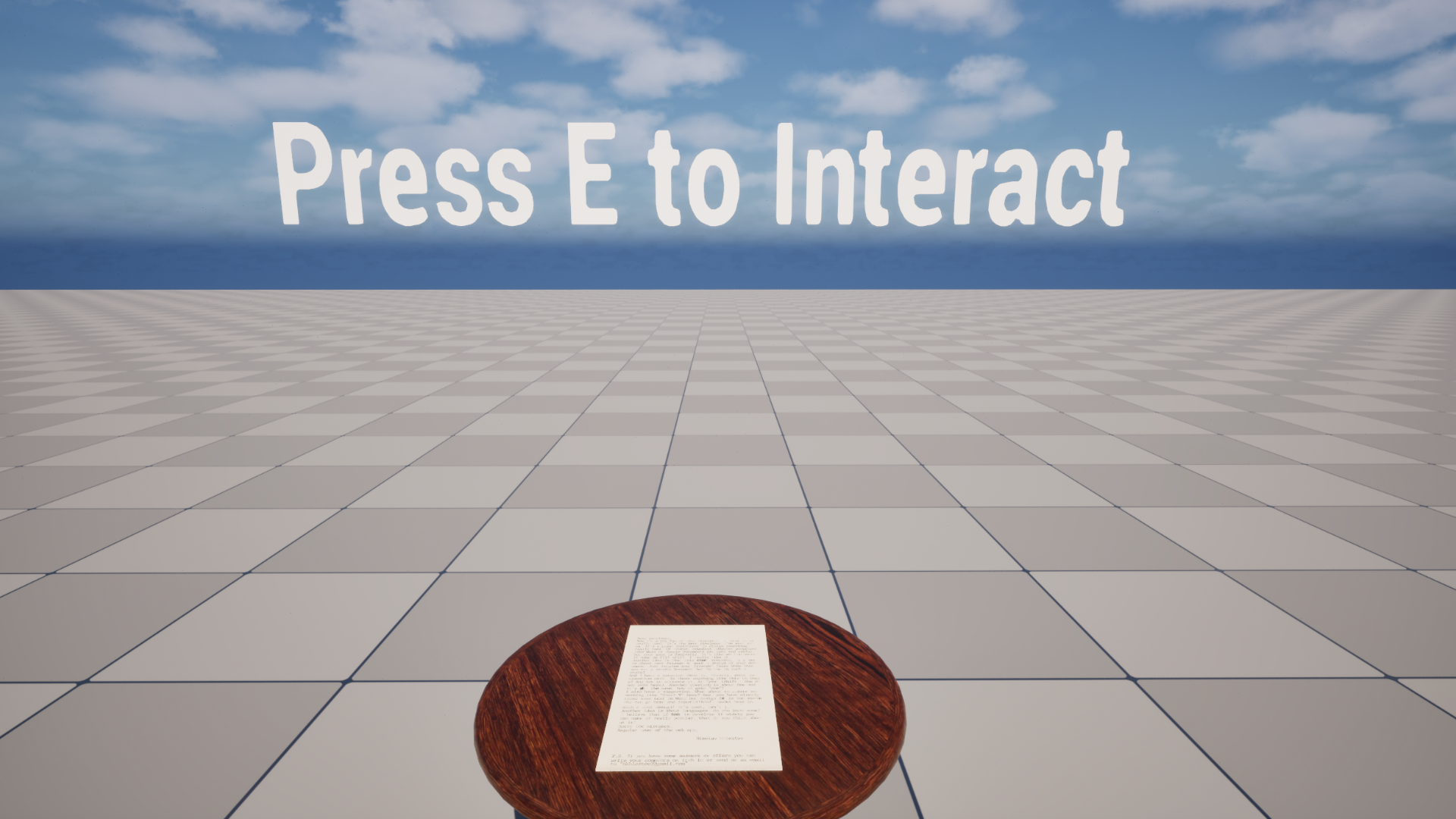 🔹 Text prompt (Press E to interact) appears when getting close to the note